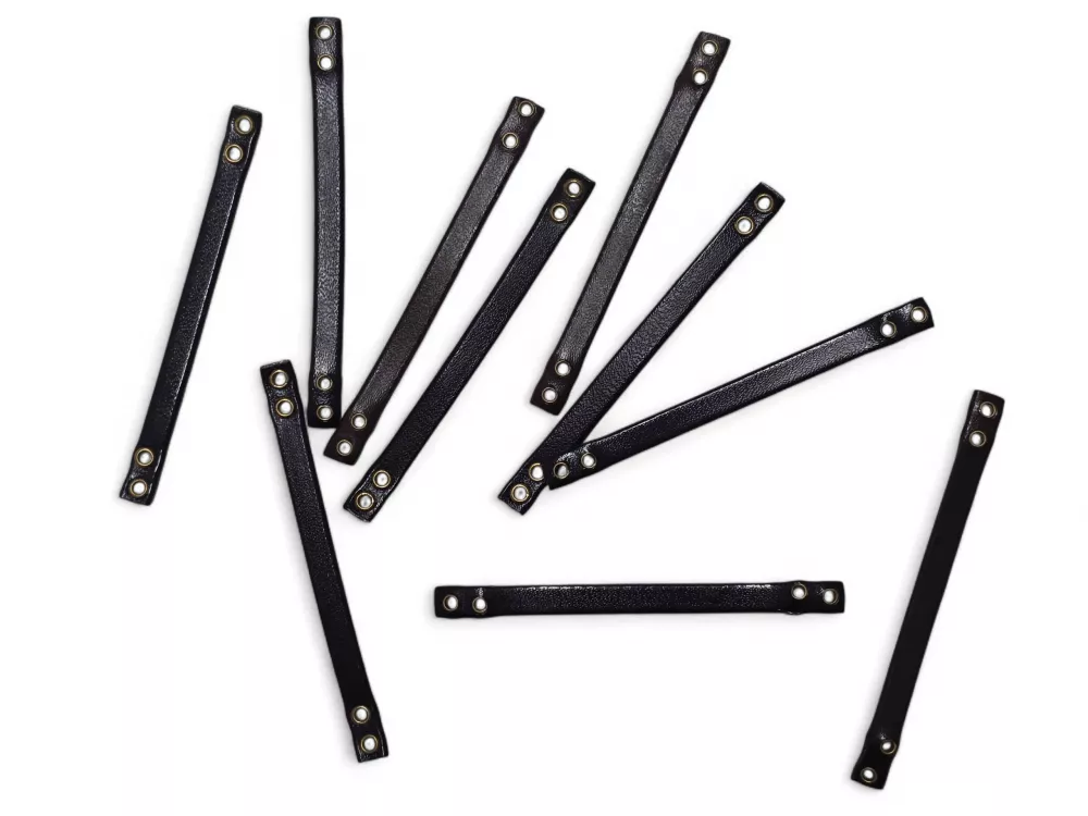 Die Aufhänger aus Kunstleder mit stabilen Metallösen sind die ideale Lösung, um Etiketten, Proben oder Muster sicher zu befestigen. Sie sind besonders strapazierfähig und behalten auch bei häufiger Nutzung ihre Form. Jede Packung enthält 10 Stück.