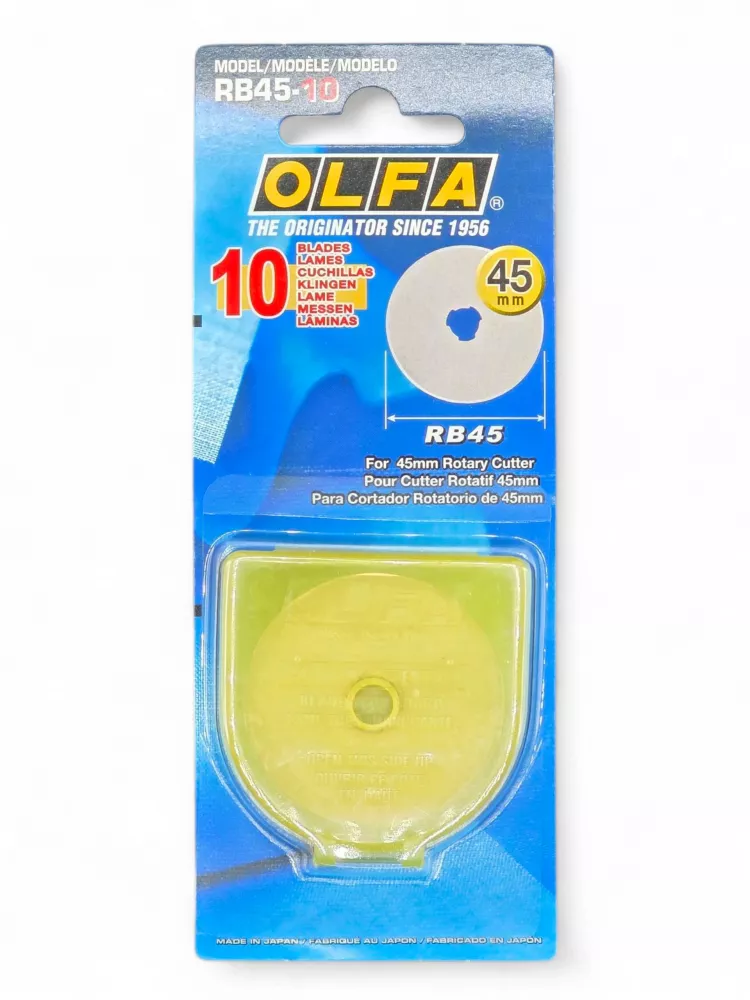 OLFA Ersatzklinge für Rollschneider, Durchmesser 45mm, glatt. 10er Pack