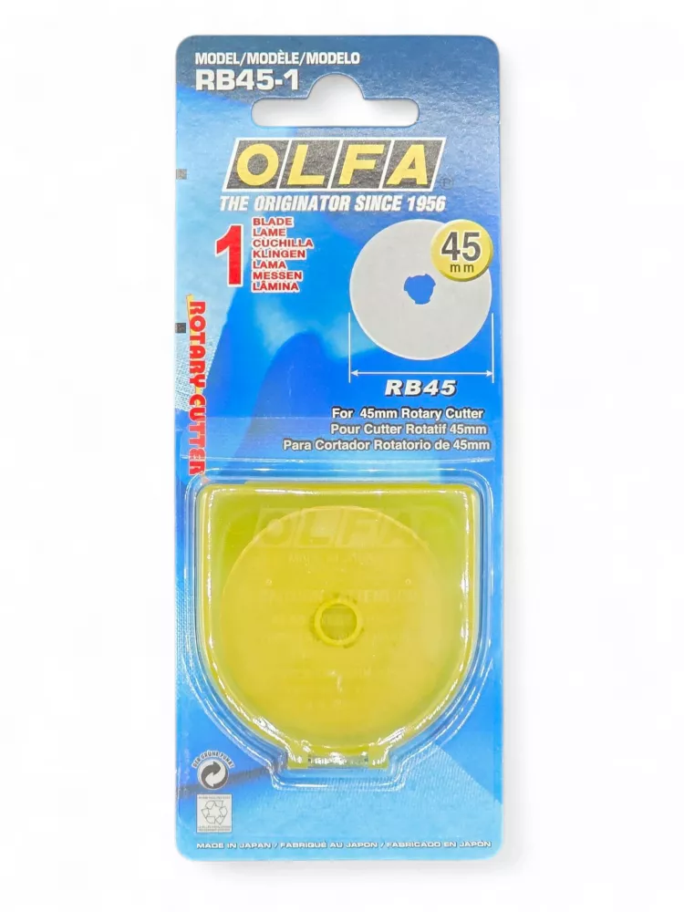 Ersatzklingen sind als Standardklingen aus hochwertigem Edelstahl für alle 45er Prym, YKK, OLFA, Omnicut-Rollschneider erhältlich und lassen sich jederzeit bequem nachbestellen.